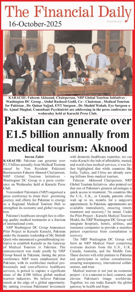 Under his leadership, NRP Washington DC Group, has prioritized high-impact initiatives such as Medical Tourism at the Port City of Karachi, aimed at transforming Karachi city into a regional medical hub that can provide advanced healthcare facilities to the Middle East & Central Asia countries. Another major focus is on Agri Tourism, where agriculture and tourism are combined to boost Pakistan’s rural economy, promote sustainable farming, and create opportunities for foreign investment and cultural exchange.